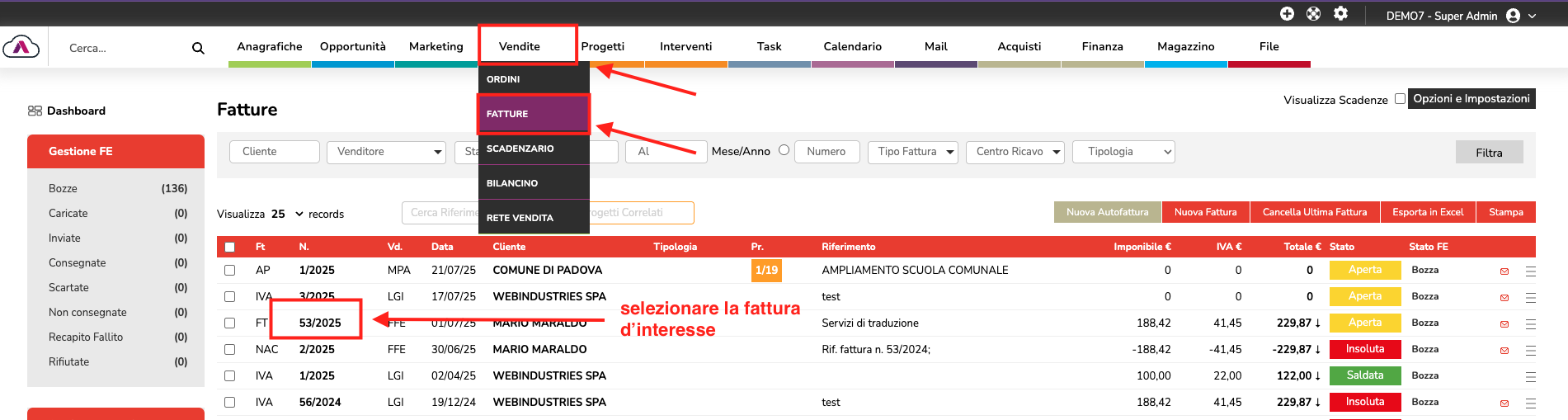 1. Accedi alla sezione “Vendite” → “Fatture” dal menu principale.
